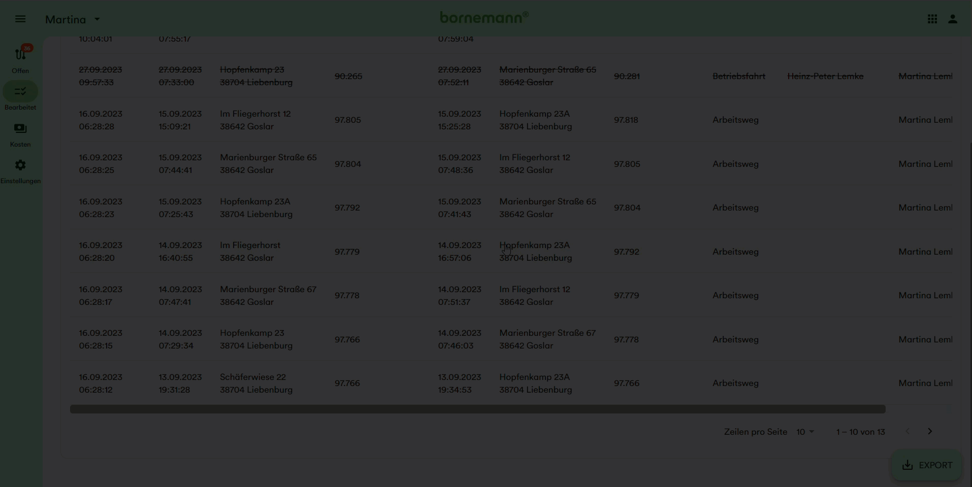 Wichtig: Für den Export müssen alle Fahrten in diesem Zeitraum bearbeitet sein.